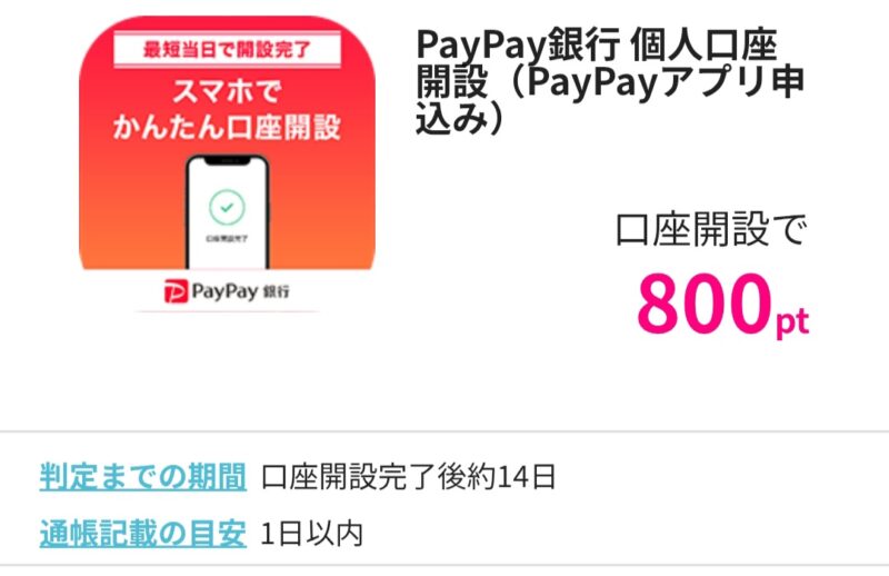銀行口座を作るだけでこれだけポイントをもらえるなら、使わない手はありませんね!