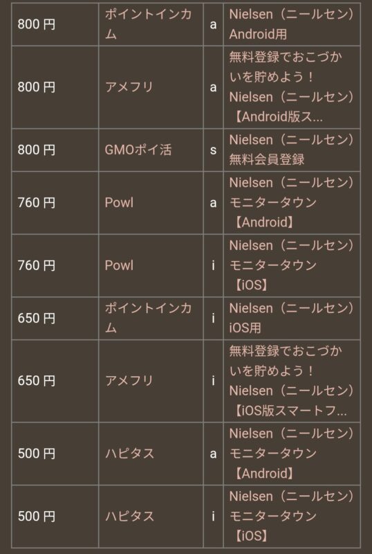 たとえば、初心者におすすめの無料登録案件はポイントインカムが最高ポイントを出していることがよくあります。