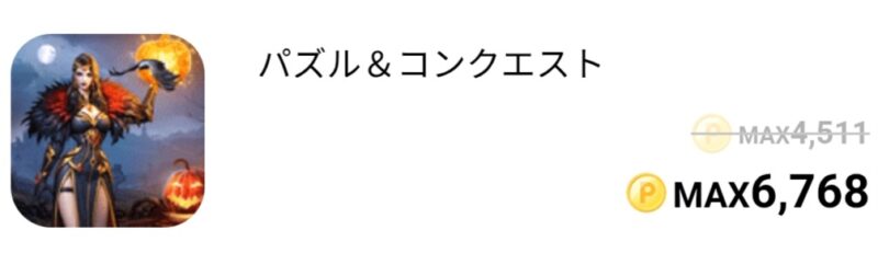 たとえば「パズル&サバイバル」や「ゴールデンホイヤー」などはコインカムが最高ポイントをたたき出していますよ。※獲得ポイントはそのときによって異なります。