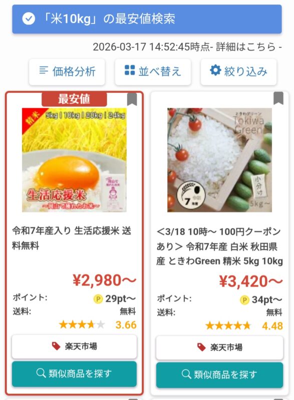 ショップリーはポイ活機能も備えつつ、Amazonや楽天市場、Yahoo!ショッピングなど複数の通販サイトの価格を一括で比較し、最安値を即座に検索できる価格比較サービスです。