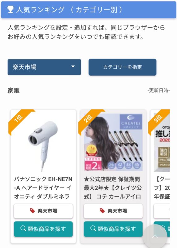ショップリー内にはお得なセール情報や、各カテゴリーごとのランキング情報もまとめられていますよ。