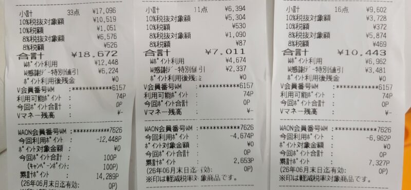 ちなみに以下の写真は、最近わが家でウエル活をしたときの購入品です。